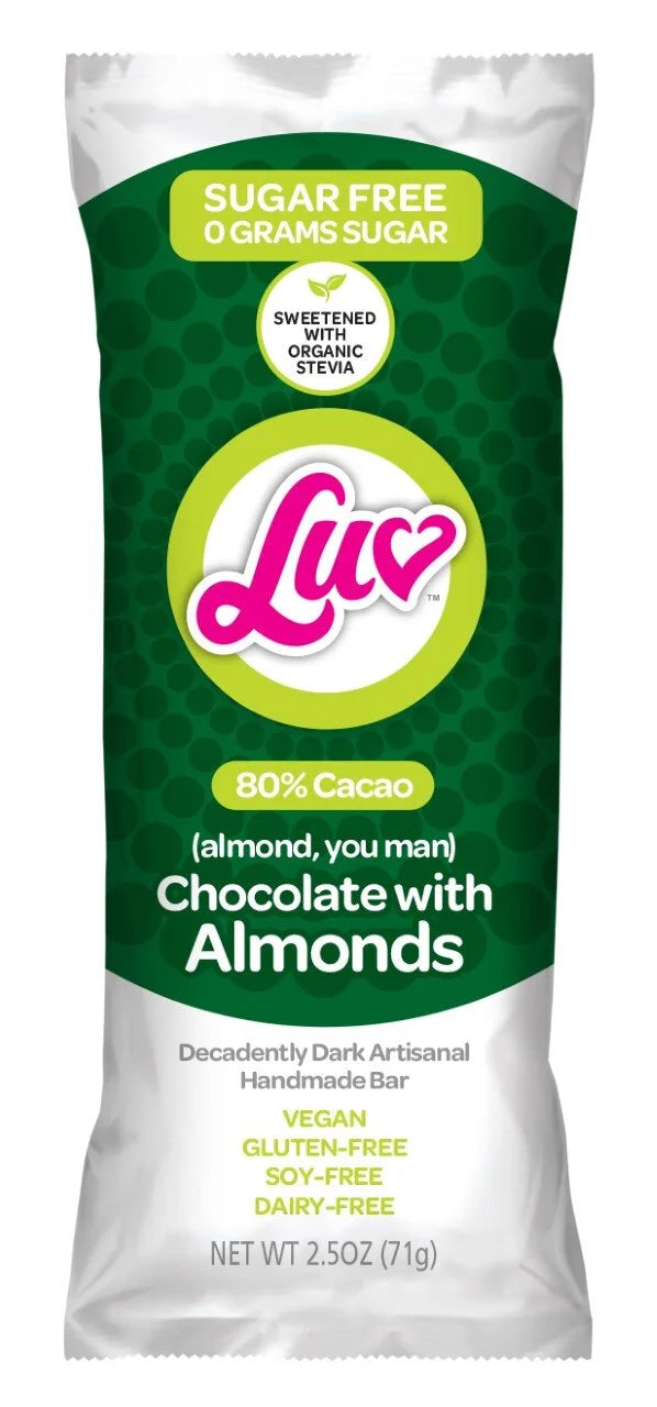 80% Cocoa, Zero Sugar, Chocolate Bar with almonds.