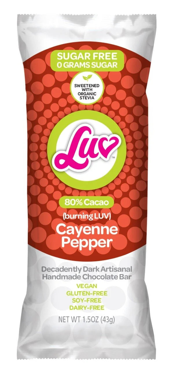 80% Cocoa, Zero Sugar, Chocolate Bar with cayenne.